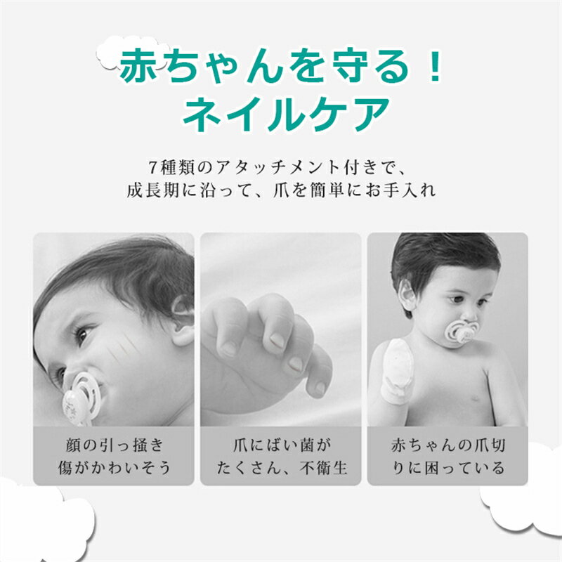 年齢別でアタッチメントを選び、大切な赤ちゃんを傷つけず、伸びた爪をディスクで優しく削ることができます。